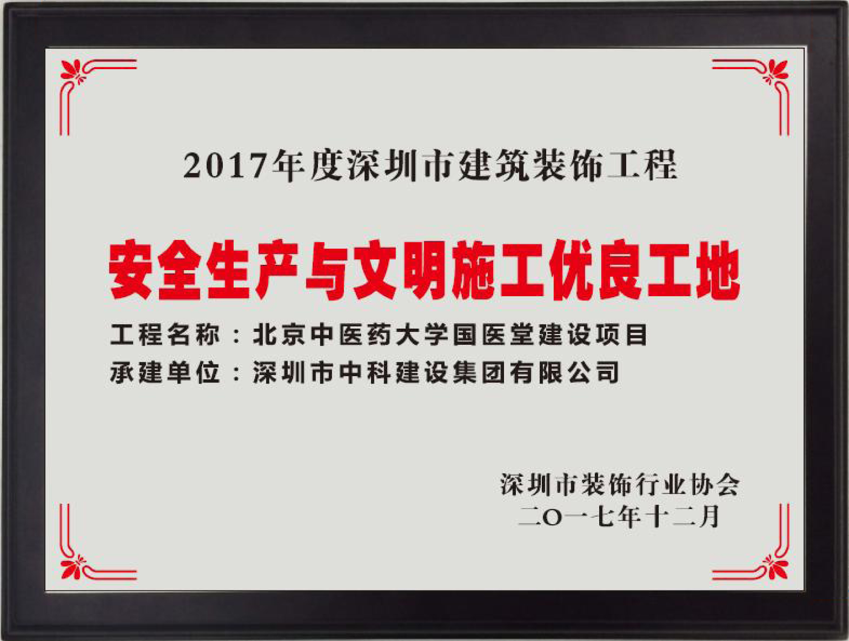 2017年度“深圳市建筑装饰工程安全生产与文明施工优良工地”榜单揭晓,由中科建设集团承建的北京...