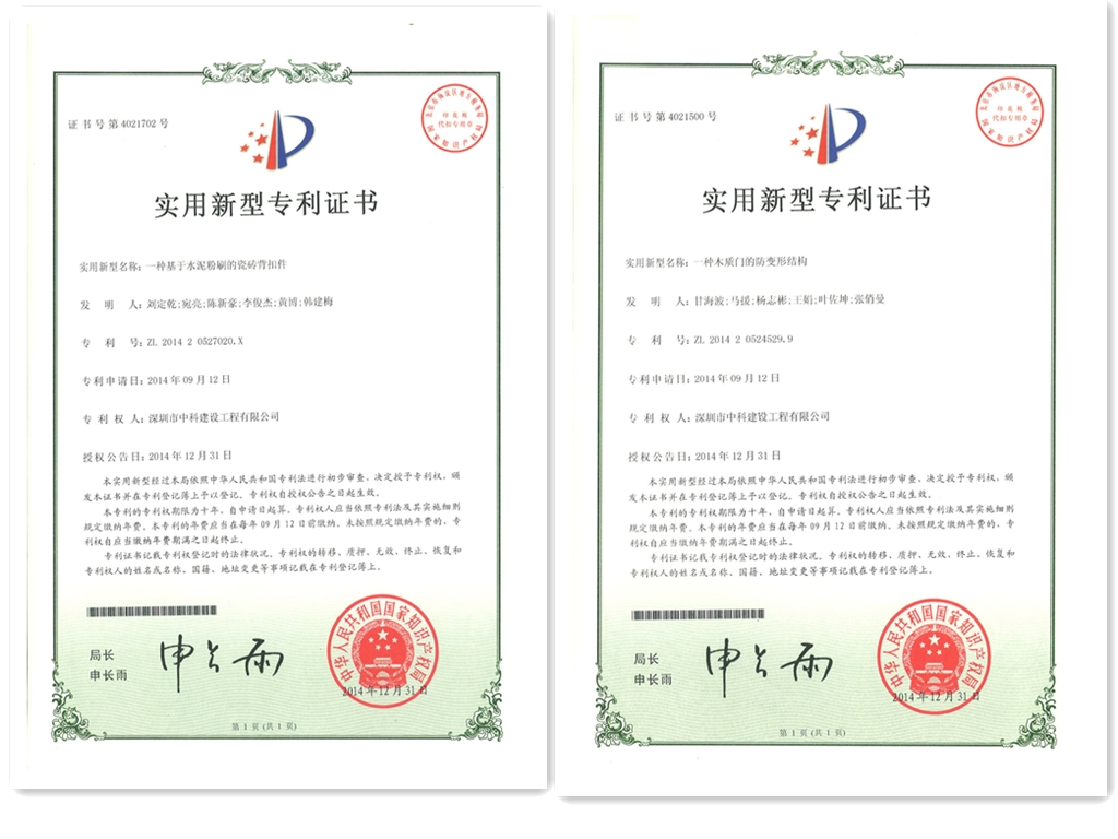 新年伊始,公司又添喜讯。由米兰·(milan)中国官方网站自主研发的“木质门的防变形结构”和“基于水泥粉的瓷砖背扣件”分别获得中华人民共和国国家知识产权局颁发的“实用新型专利证书”。这是继公司自主研发的“带声控开关的LED节能灯”和“固定天花板装置”获得实用新型专利证书后的又一成果和荣誉。